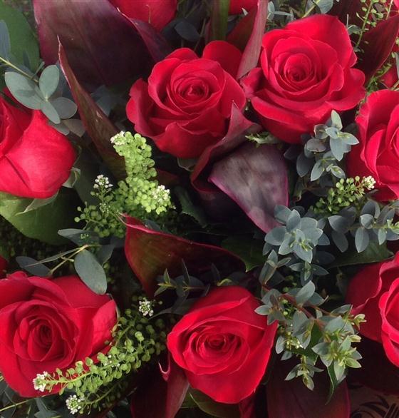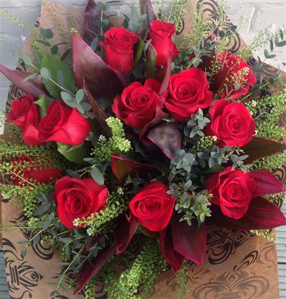 12 Long stemmed Colombian freedom roses mixed with complimenting foliage.